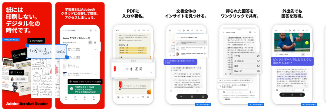 在榜单前列,依然能看到“ChatGPT”和“AI ChatBot”等通用型产品的身影,它们依靠通用型问答、写作、翻译等功能,形成了稳定的订阅收入,而日本也是上述两款产品中仅次于美国的第二大内购收入市场。“Adobe Acrobat Reader”则通过为 PDF 工具增加 AI 总结、问答等模块,证明“传统工具+AI 增值”的模式在日本也能跑通。