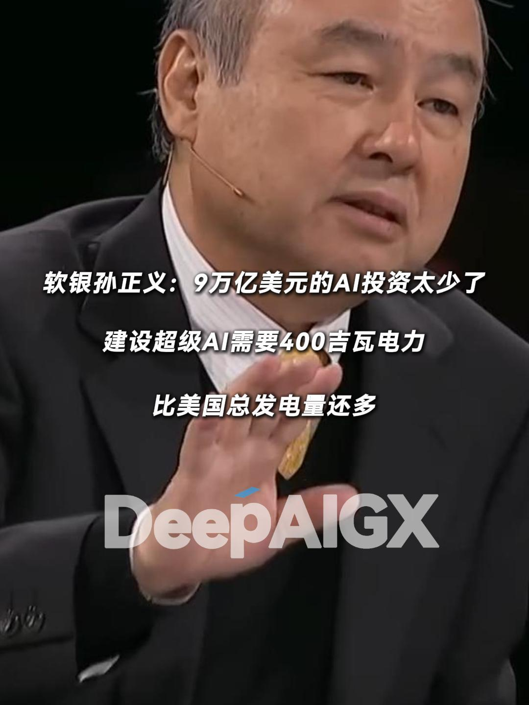 软银孙正义:9万亿美元的AI投资太少了,建设超级AI需要400吉瓦电力,比美国总发电量还多