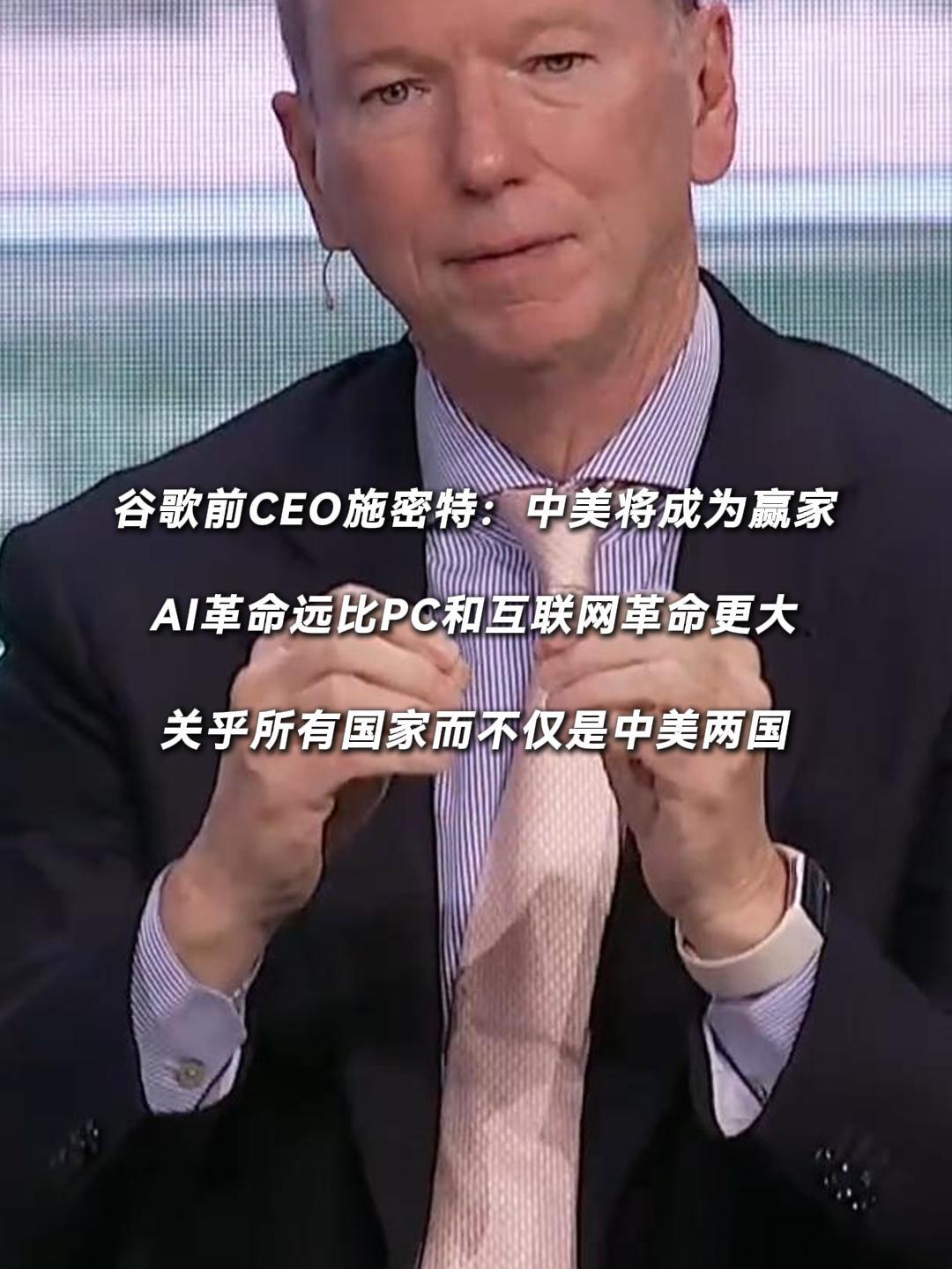 谷歌前CEO施密特:中美将成为赢家,AI革命远比PC和互联网革命更大,关乎所有国家而不仅是中美两国