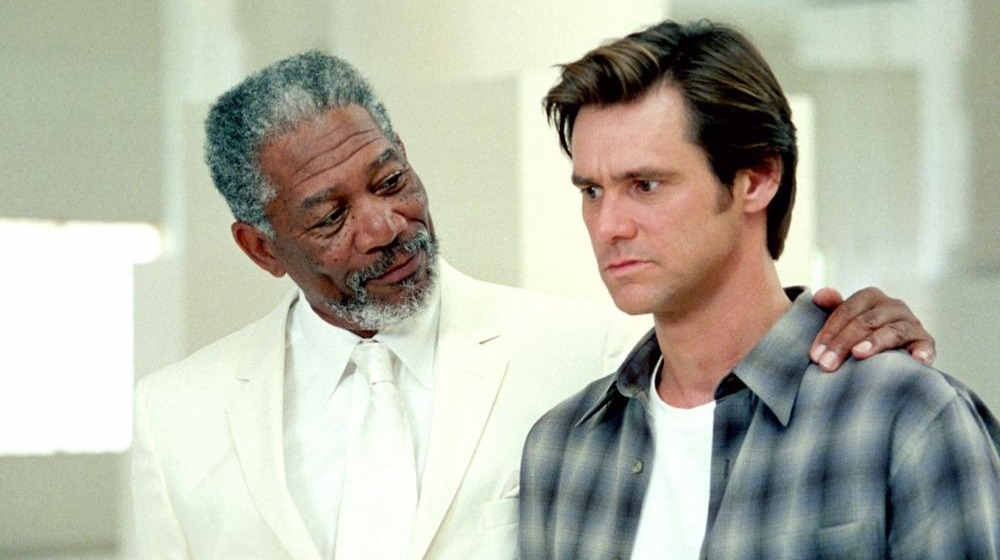 该片段出自金凯瑞主演的电影《冒牌天神》,2003上映。金凯瑞在电影中扮演一个偶然获得超能力的普通人,这个片段就是金凯瑞利用获得的超能力捉弄排挤自己同事的场景。据说这个场景在拍摄过程中NG了许多次,原因是女主被逗的绷不住。
