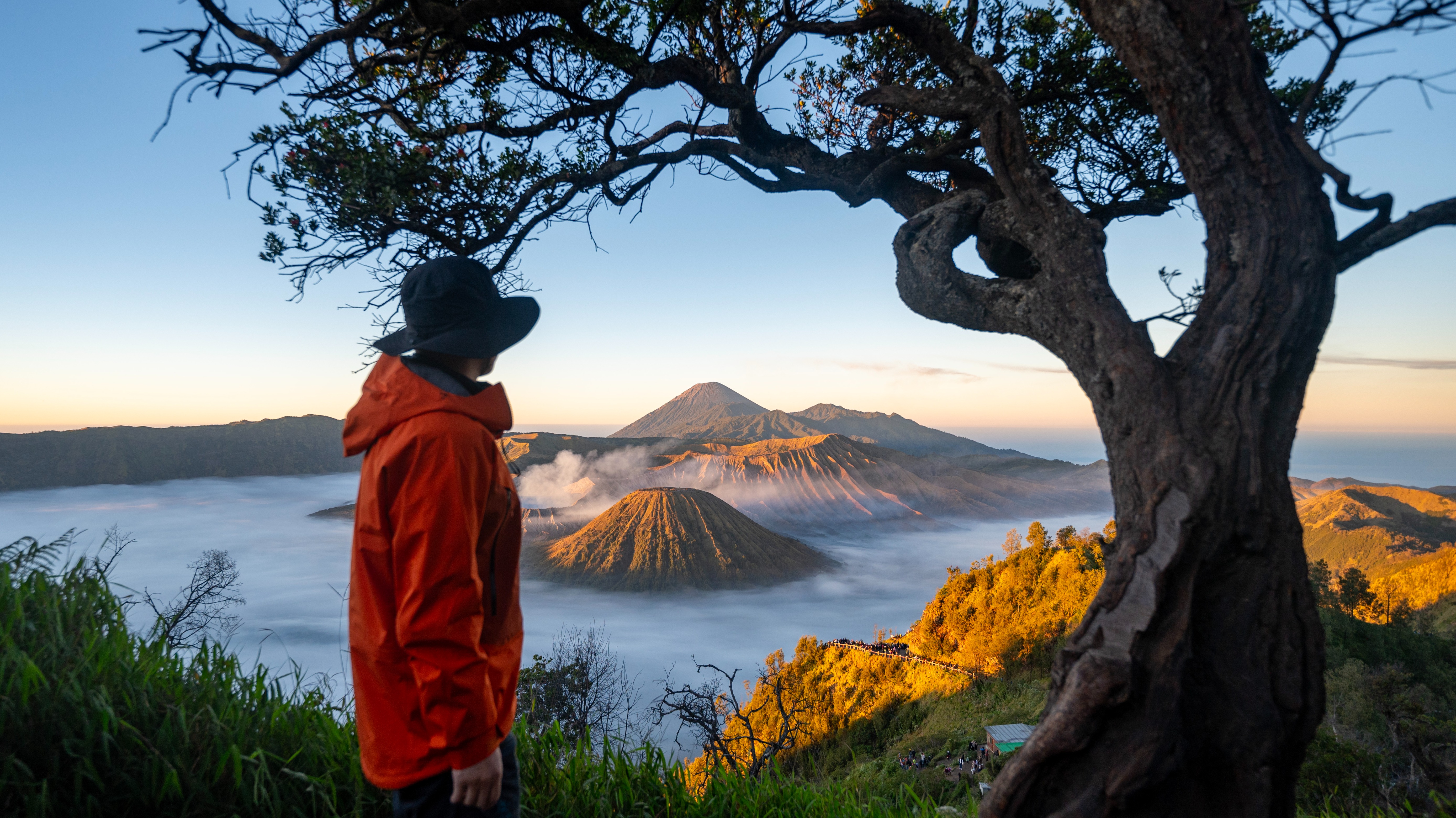 去Bromo的游客,从现场看,80%以上都是中国人,且以女生居多。但自从我在小红书关注这个地方开始,看到的图片几乎都是同样的构图:找一棵树,脱得只剩背心吊带或者运动内衣,然后精致地拍照和修图。
