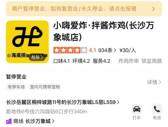 红餐网了解到,该门店由原有海底捞旗下副牌“小嗨爱炸”门店升级而来。目前,大众点评显示小嗨爱炸长沙万象城原店已处于暂停营业状态,位置与“小嗨爱炸hiburger”首店信息一致。