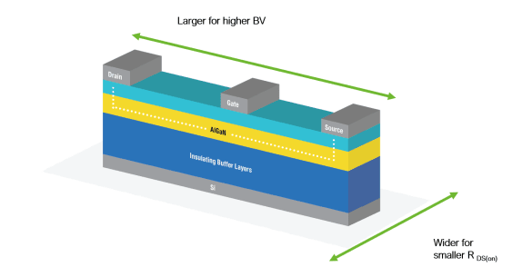 GaN-on-Si HMET结构代表原理图,图源丨NexGen