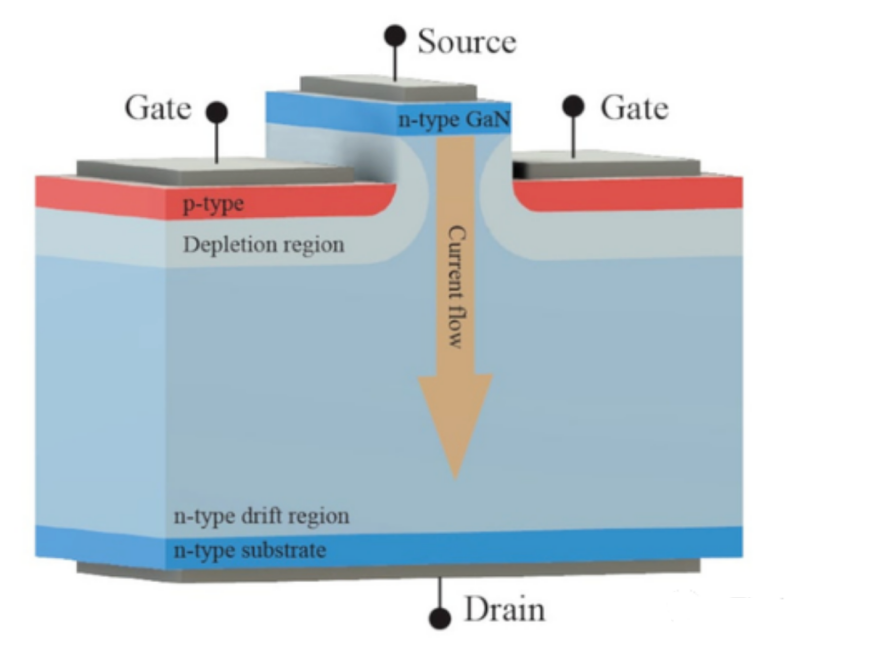 vGaN器件在结构上还自带独特优势。一方面,在器件面积相同的前提下,它可以通过增加晶体管内部漂移层(主要作用是传导电流)的厚度,来提升自身的电压等级,从而适配更高电压的应用场景。另一方面,它的电流导通路径面积更大,这使得它能够承受更高的电流密度,在高电流工况下也能稳定工作。