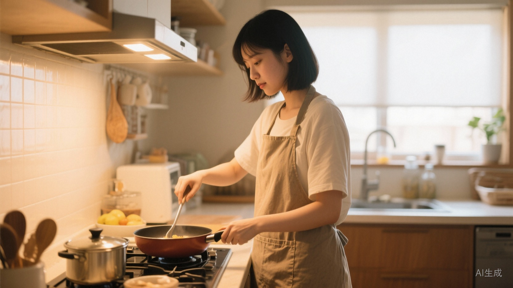 因为他们大多还在和陌生人合租、经常搬家,他们觉得生活不稳定,不敢踏踏实实地在厨房里做饭。这个循环导致他们对厨房的掌控能力越来越差。
