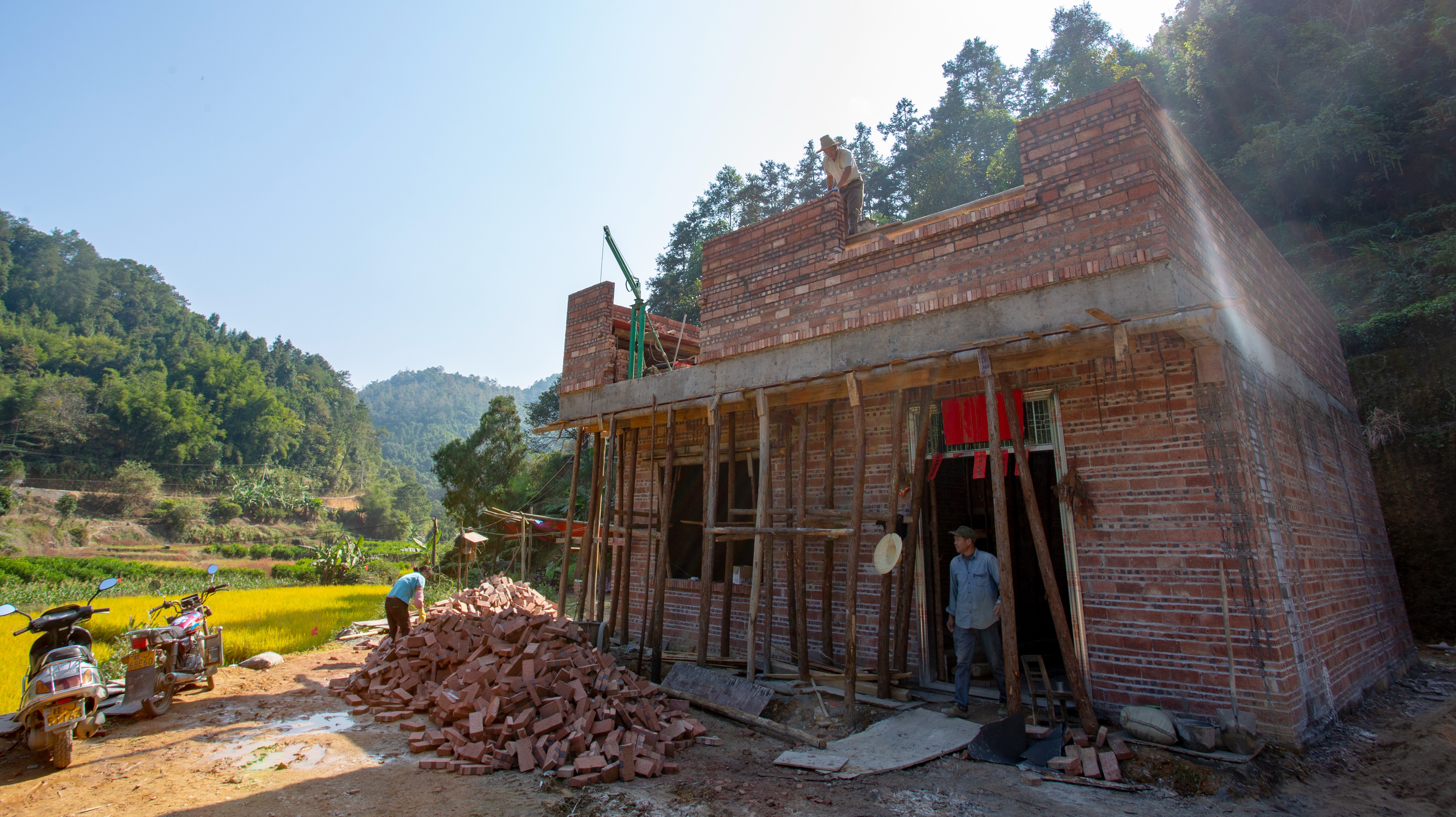 2018到2020年是阳光灿烂的日子,他和妻子一年赚了三十万,忙起来还得叫个帮工。那时的房子以拆旧建新为主,主力则是五六十岁的人——他们八九十年代盖的老房,设计和质量都已跟不上时代。