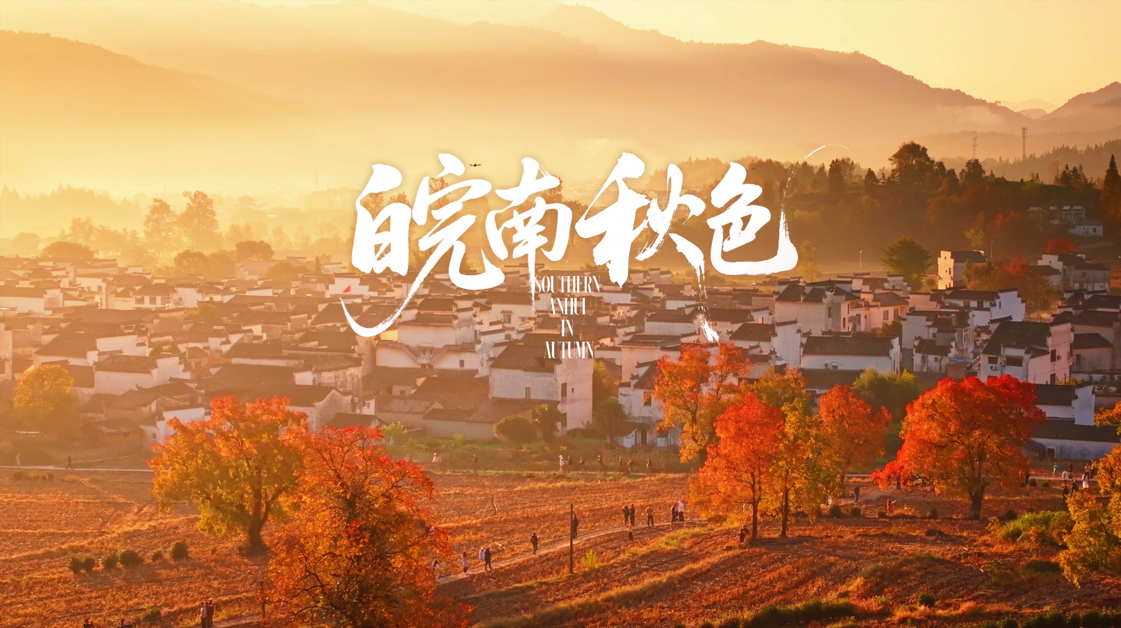 白墙黛瓦在金色的薄雾中若隐若现,乌桕树燃着深浅秋红,雾霭沉沉,苍茫而不哀伤,每一帧都是一幅流动的水墨画。在这个秋日终章,去一趟皖南吧。