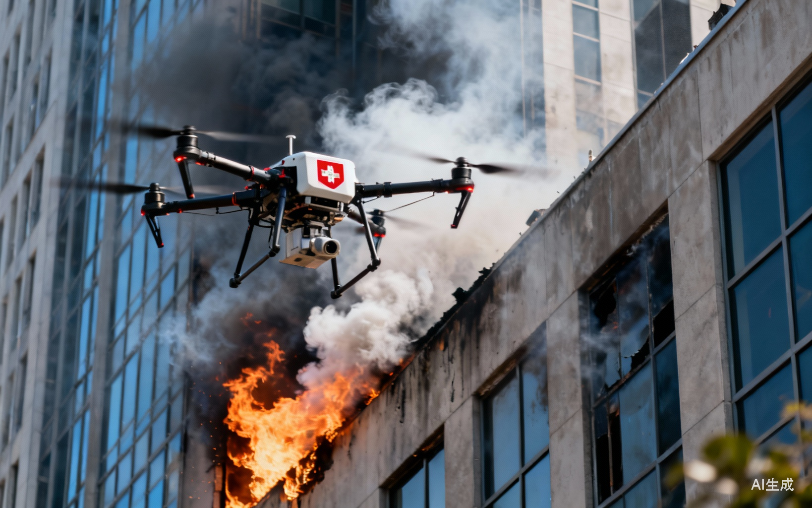 罗军指出,高层建筑火灾发生时,现场往往伴随复杂的湍流和强风场,这对无人机的抗风等级和飞行稳定性提出了极高要求。如果无人机功率不足,在强风和热气流干扰下,很难保持稳定姿态进行精准作业。