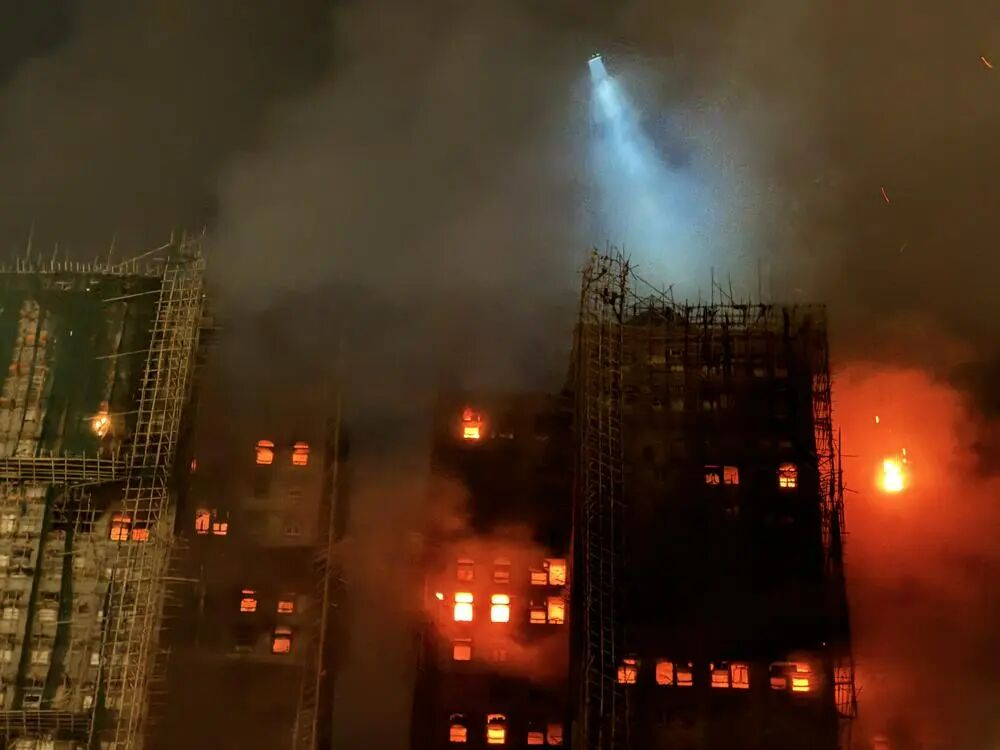 今日凌晨1时,财联社记者在香港大埔火灾事故现场发现,夜空中有多架无人机在火场上方盘旋。现场一名警务人员向记者确认,消防处及警方调用的无人机主要用于火场侦察与辅助照明。