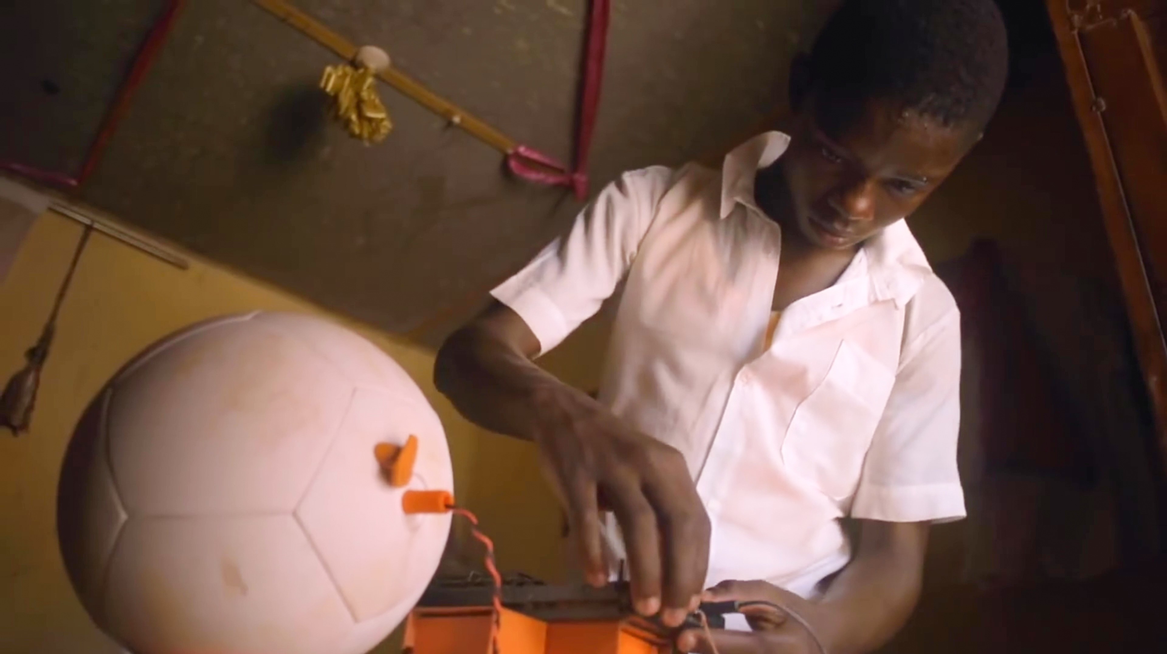 利用非洲儿童爱踢足球的习惯,一个哈佛大学的科研小组发明了一种发电足球“SOCCKET”。这种足球里面装有感应磁性线圈,当球体的运动带动磁性线圈运动时,就会产生电压。这种足球踢30分钟,可供小型LED灯照明3小时,在满足儿童们肆意玩耍的同时,还能解决当地居民用电困难的问题。