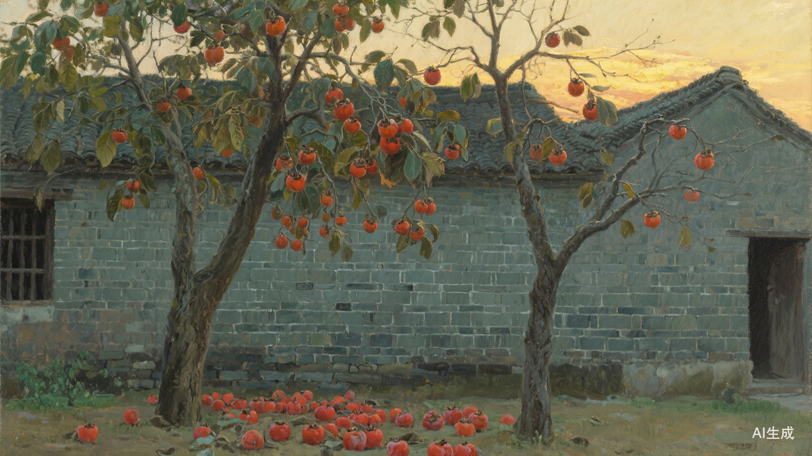 柿子树皮实,耐旱,一旦扎根,年年秋冬便挂起一树红果。