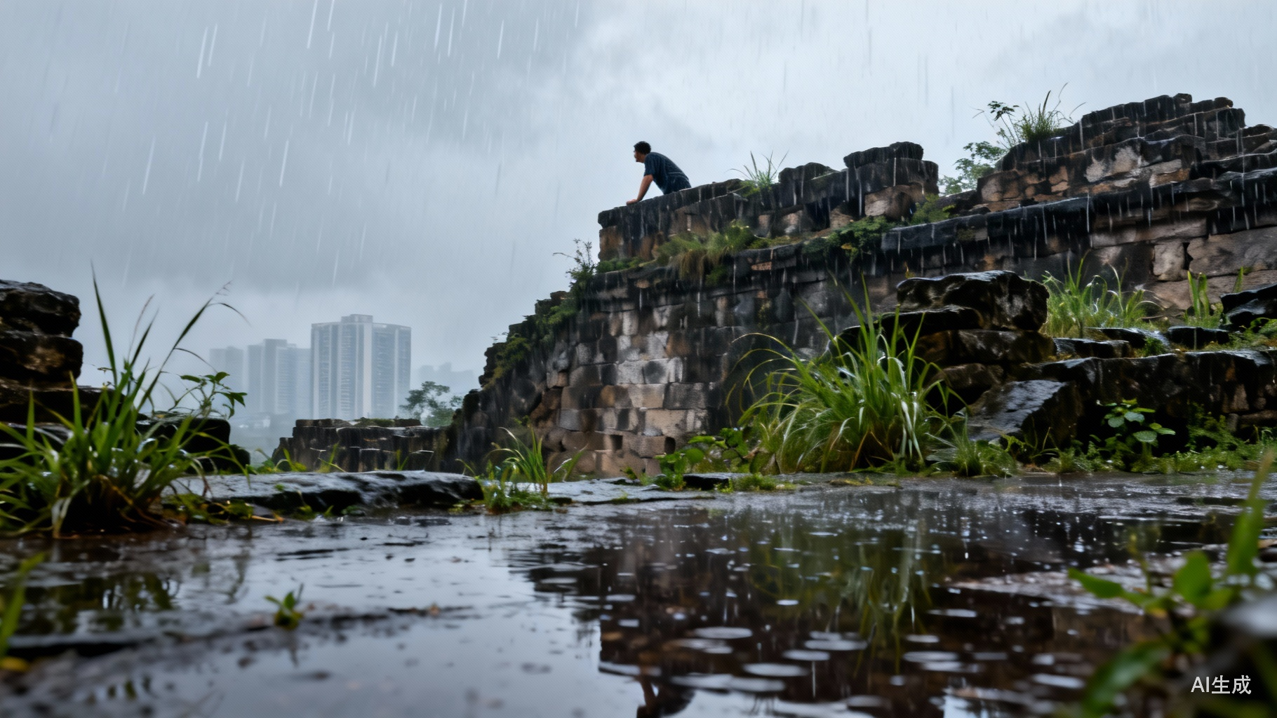 站在高台之上,雨丝渐密,远处工厂的轮廓在雾气中模糊成一片灰影。脚下的夯土被雨水冲刷出层层纹路,仿佛秦简上刻写的篆文,记录着权力与文明的起落。渭水在低处流淌,无声却执拗,如同历史的暗流,将荣耀与灰烬一同裹挟而去。千载之下,风起云涌皆归沉寂,唯有渭水东流,不舍昼夜。