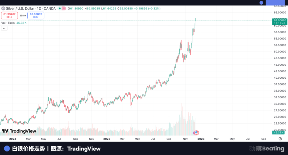 市场八卦从来不少,有传言称近期白银价格从30美元向60美元的狂飙,幕后推手正是摩根大通自己。这样的说法当然没有证据,却足够说明一件事,在很多人心里,它已经从做空纸白银的操盘手,变成了实物资产的最大多头。