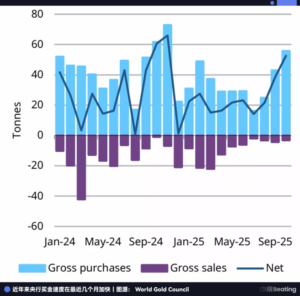 尽管2025年的金价处于历史高位,让部分央行的购金速度在战术上有所放缓,但在战略上,“买入”依然是唯一的动作。