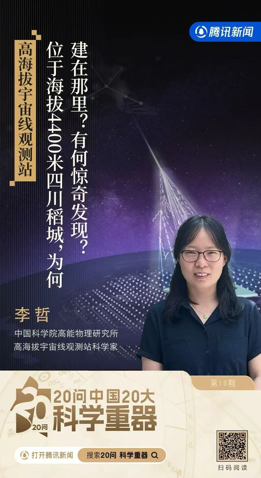 21世纪以来,科学研究范式正从“小作坊”模式迈向“大科学”工程。在此浪潮中,中国一批科研重器蓬勃涌现:“中国天眼”聆听深空电磁波,“阿里计划”致力捕捉原初引力波,“高海拔宇宙线观测站”探测超高能粒子,“人造太阳”攻关聚变能源,“高能同步辐射光源”解析微观结构等等。这些大科学装置合力拓展人类认知边界。腾讯新闻推出《20问中国20大科学重器》大型特别策划,邀请20位科学家,给出从宇宙起源到未来能源的权威解读。