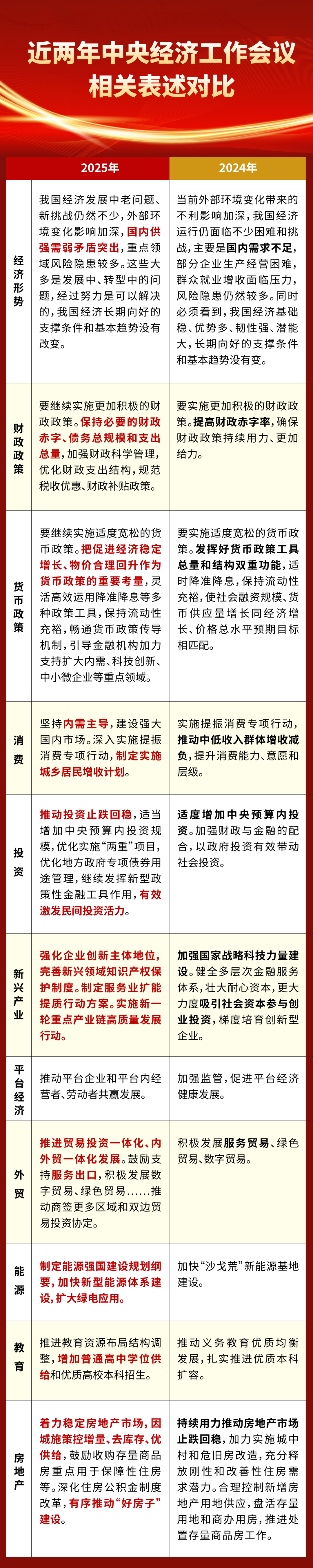 对比近十年来中央经济工作会议相关表述,《每日经济新闻》记者(以下简称“每经记者”)发现,与以往强调规律性认识不同,本次会议首次提出:“必须充分挖掘经济潜能,必须坚持政策支持和改革创新并举,必须做到既‘放得活’又‘管得好’,必须坚持投资于物和投资于人紧密结合,必须以苦练内功来应对外部挑战。”