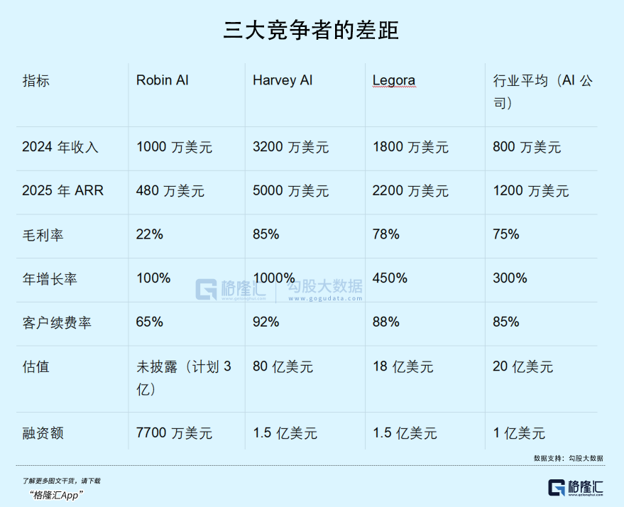 2025年Q1~Q2,Robin AI只签下2家新客户,而Harvey签了17家,Legora签了11家。