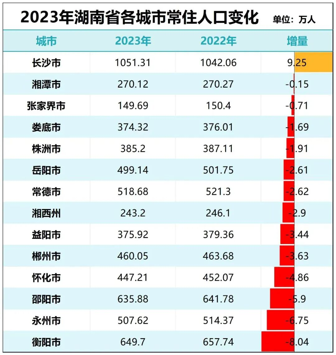 湖南14个地市州中,仅长沙还能维持人口正增长。