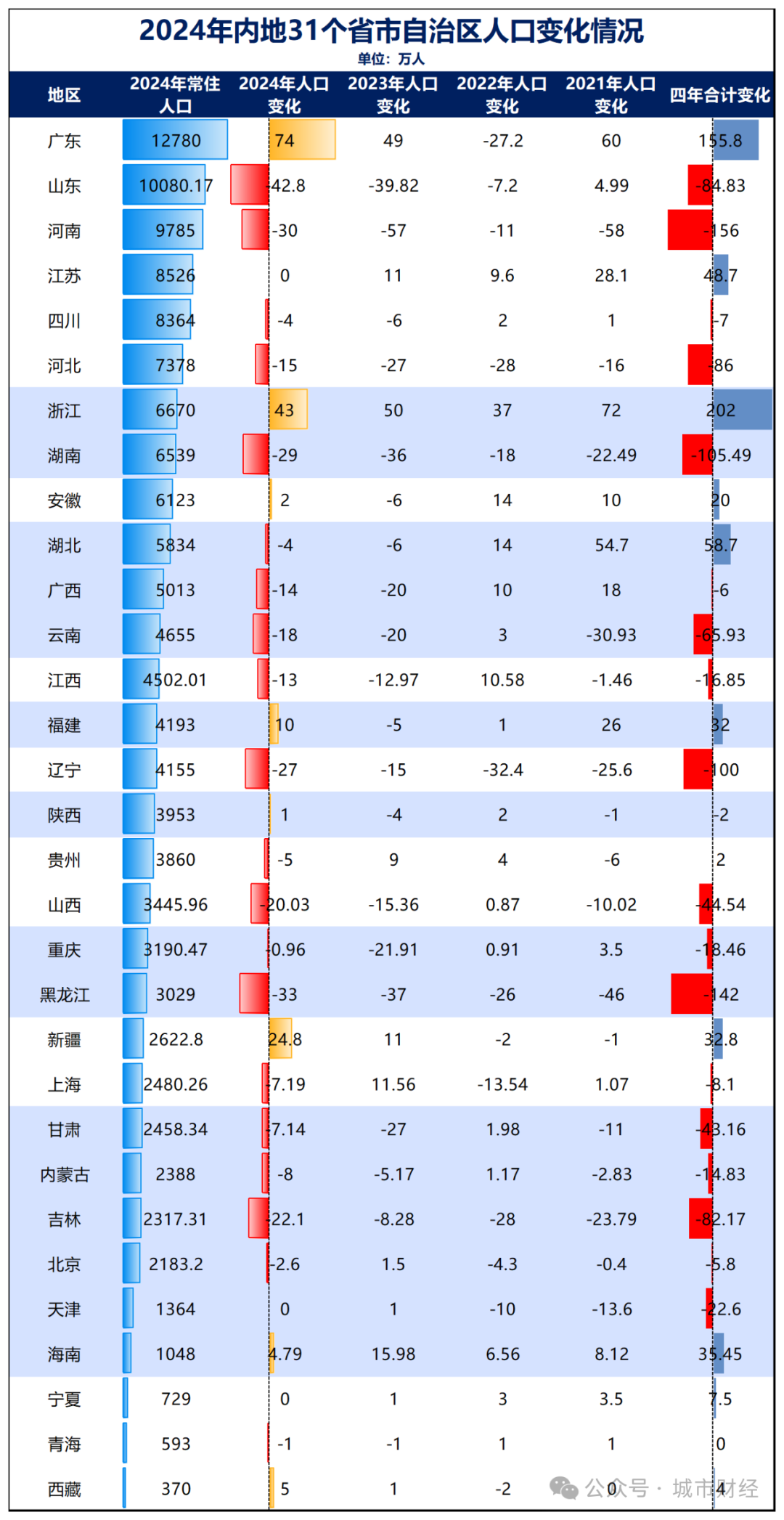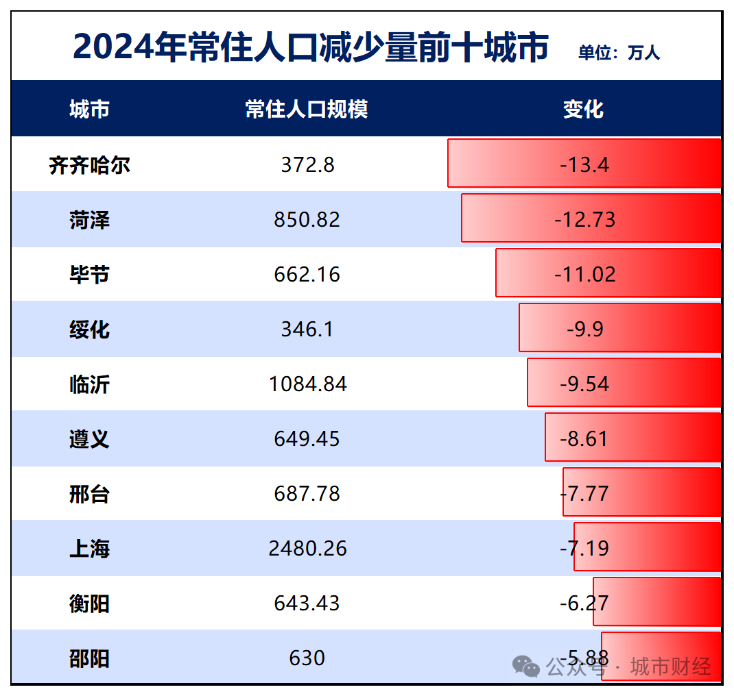 在全国常住人口减量前十的城市中,湖南就占了2个。