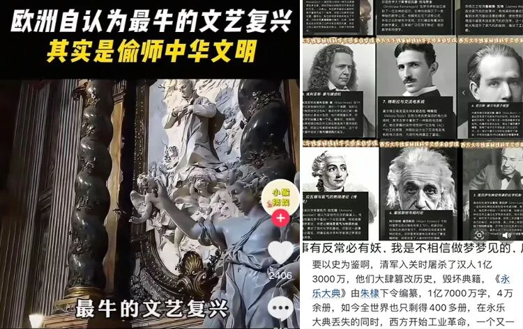对明朝的封神也已经到了「美化缠足」「世界顶尖科学家全是偷师《永乐大典》」「西方工业革命和欧洲文艺复兴都是偷师华夏」的地步。