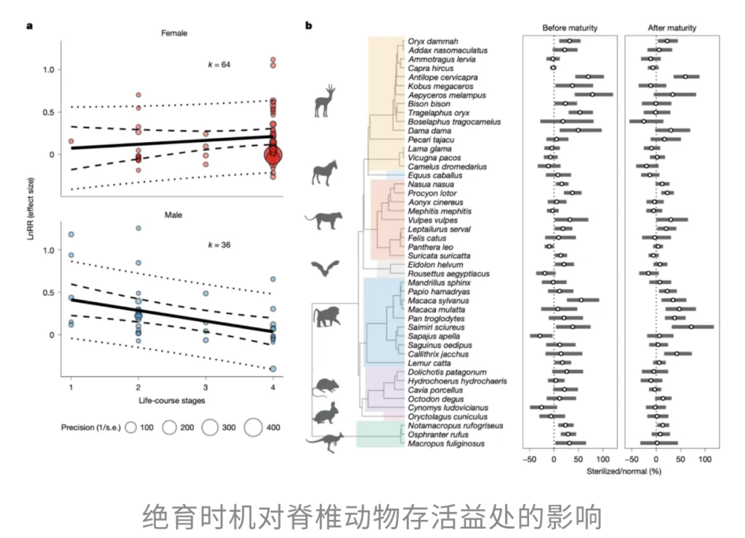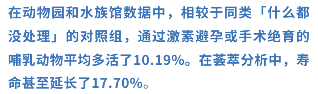 近期,来自奥塔哥大学等机构的研究团队发表于 Nature 的一项重磅研究 [1] 给出了一个让人倒吸凉气的答案:在脊椎动物中,通过阉割或激素避孕方式抑制繁殖, 平均能多活10%-20% 。