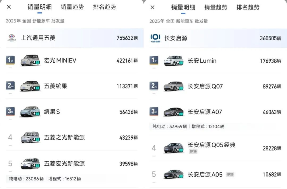 五菱品牌不用多说,在今年75.6万辆的总销量中,仅宏光MINI EV就占到了42万辆。长安方面,今年以来,深蓝和阿维塔的同比增速都超过了两位数,但距离年初制定的销量目标还有一定差距。最被人质疑的问题出在启源身上。