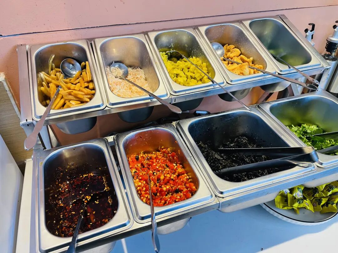 江先生店内供应的免费辣椒蘸水和剁椒酱。受访者供图