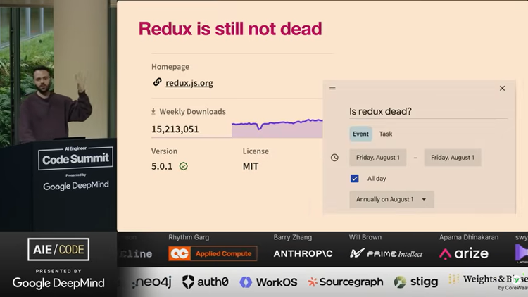 这段吐槽出自一场挺有代表性的现场演讲——《From Vibe Coding To Vibe Engineering》。讲者是Kitze(Sizzy创始人),他在一个面向开发者/AI工程师的大会上,沿着自己过去几年在前端圈“追框架、踩坑、写工具”的经历,复盘了一个正在发生的变化:当大模型把“写代码”这件事变得前所未有地容易,真正被重塑的其实不是React写法本身,而是我们做工程的方式、质量控制的边界、以及人与工具之间的协作关系。