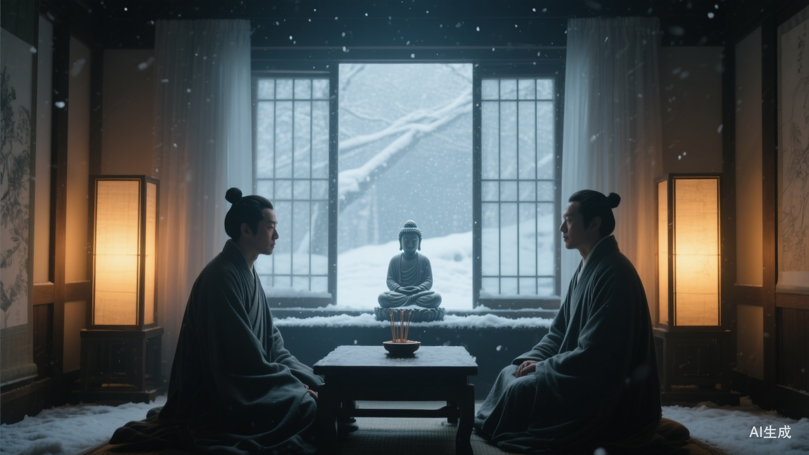 短片开场镜头进入室内,房间里摆满了各种佛像和宗教用品,结合一目了然的雪景,观众就知道这是发生在东北某地的故事。
