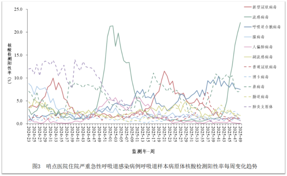 严重呼吸道感染住院的患者中,流感也是头名,12月1-7日,占比22.3%: