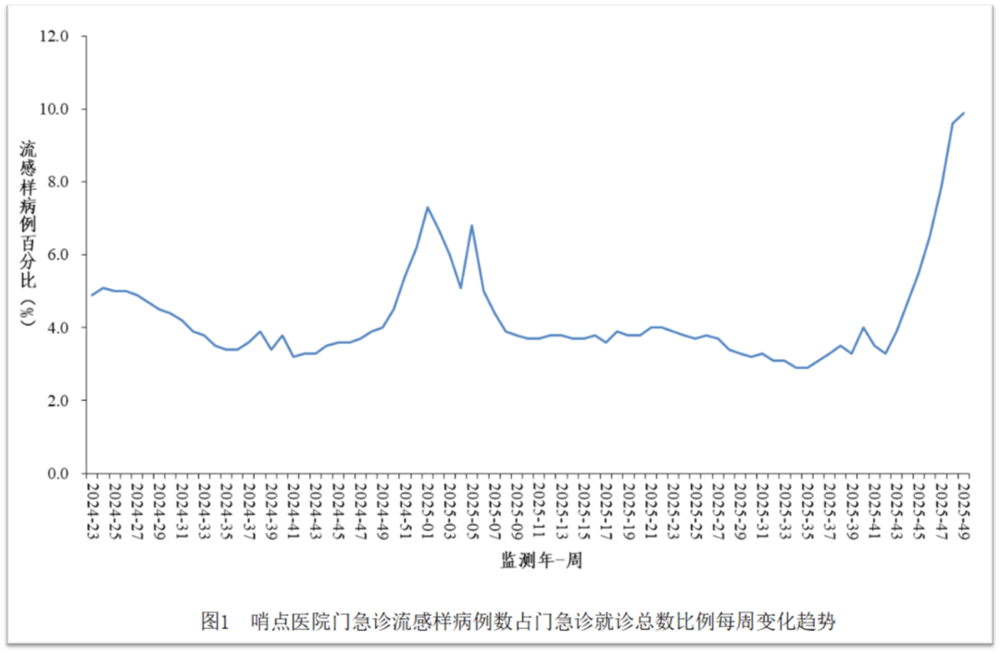 哨点医院门急诊的流感样疾病(即呼吸道感染求诊者)比例超过10%,上个流感季最高只有8%。