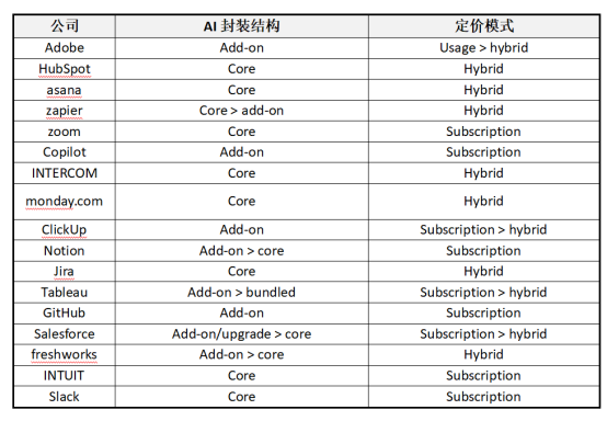 从这张表中,我们大致可以看清AI封装和定价模式的演进趋势:
