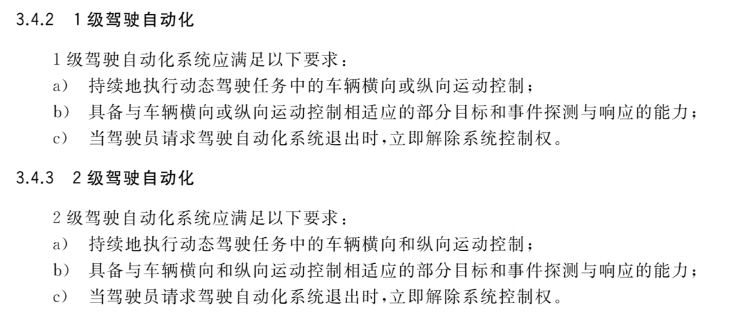 之所以老局主观上认为这是一个划时代的标志,并不是纯粹自己发明的概念,而是根据《汽车驾驶自动化分级(GB/T 40429-2021)》的国家标准来看,L3以及之后的L4、L5比起之前的L0、L1、L2,真的就是两个物种。