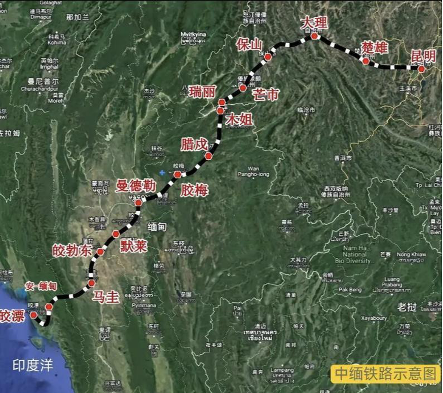 说来令人感慨,中缅两国早在2011年就签订了谅解备忘录,中国将全资修建一条长1215公里,连接皎漂港、缅甸第二大城市曼德勒和云南昆明市的铁路,预计耗费200亿美元,条件是落成后由中国独立运营50年。