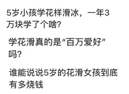 对于多数普通家庭的孩子来说,兴趣是一个昂贵的东西,即使家里有负担“学花滑”的经济实力,也未必会将其安排在兴趣班的行列里。