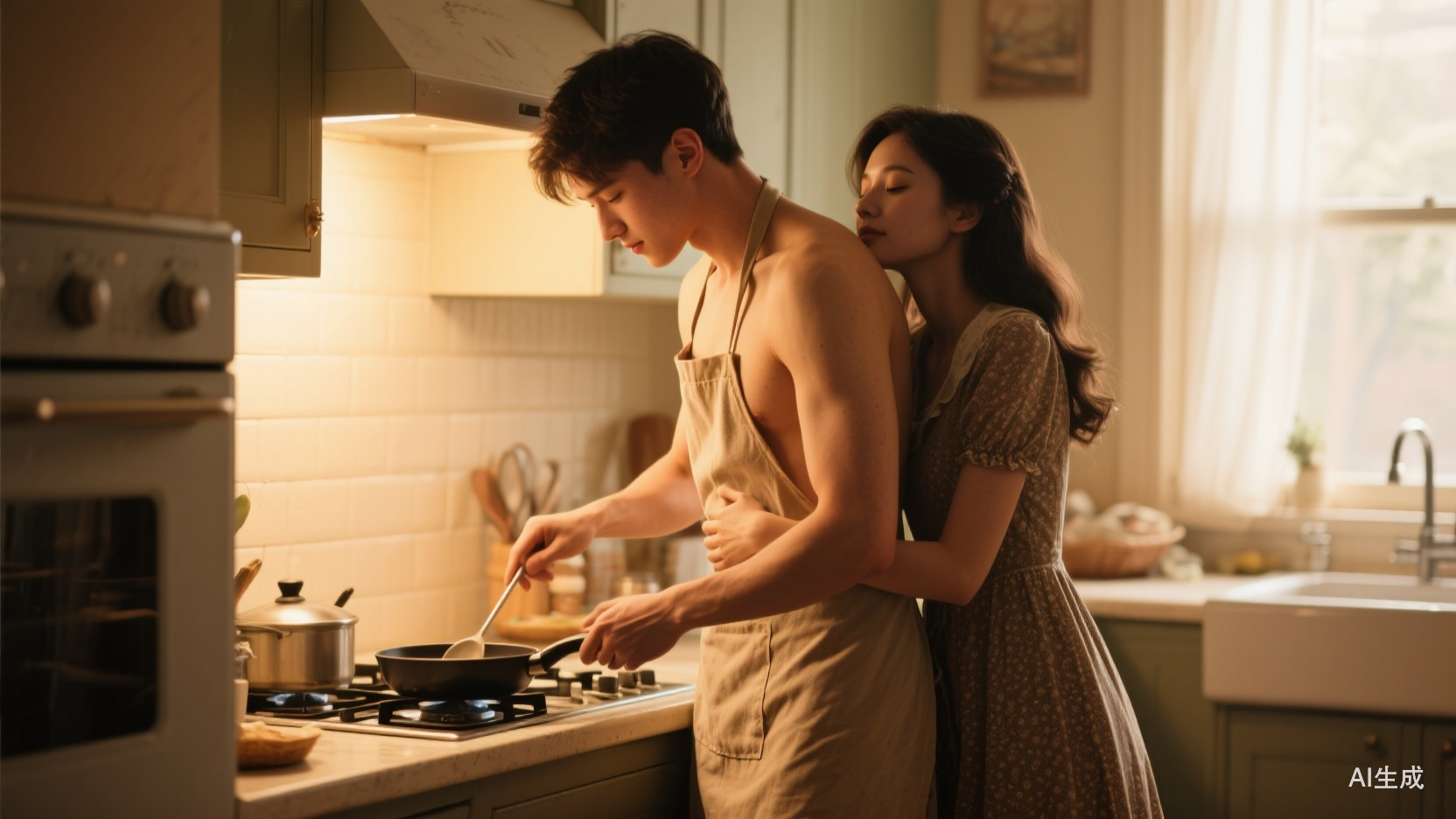 当然,所谓的尺度大引起不适,并非是因为角色身体裸露面积过大,而是因为卡面内容所营造的氛围充满了“性暗示”,尤其是女主角揉捏夏以昼的胸肌和腹肌、在厨房搂抱着激情拥吻,一系列亲密互动确实放开了尺度。