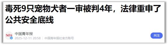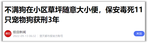 你看看之前的投毒杀狗案就知道了——2021年,黑龙江一名保安因不满宠物狗在草坪上随地大小便,便用浸入老鼠药的鸡肝毒狗,导致11条宠物犬中毒死亡。这人最后被判了三年七个月。