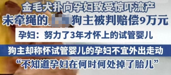 当时,41岁的孕妇出门拿快递,碰巧遇到邻居家没牵绳的大金毛冲她狂奔而来。惊吓之后,孕妇失去了胎儿。