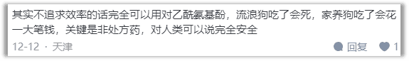 更激进的帖子则建议大家,吸取大爷的教训,下次毒狗做得隐蔽些。比如改用异烟肼,或者感冒药: