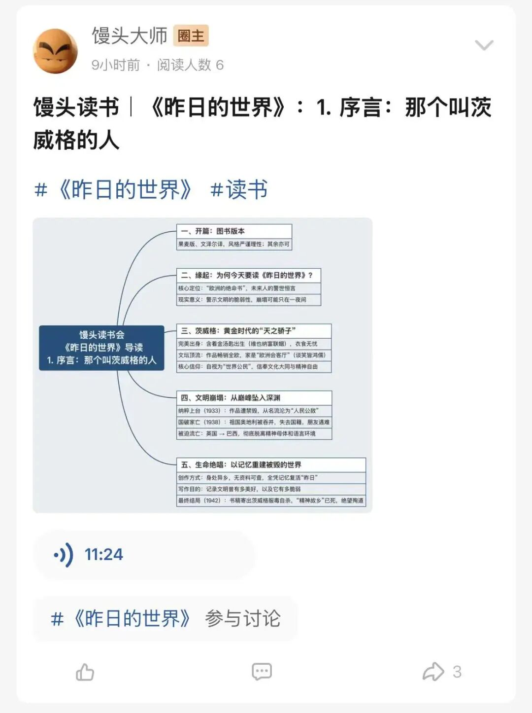 扫码之后你就会进入“馒头读书会”的专属社区。