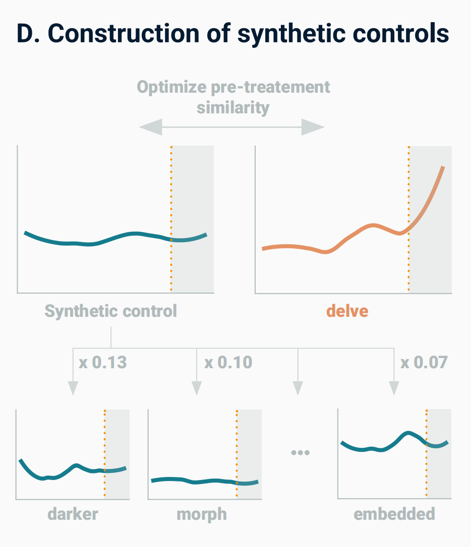 为了理清这种可能性,研究人员用了计量经济学中的“合成控制法”。他们利用大数据构建了一个“没有AI发布”的平行宇宙模型。在那个虚拟世界里,人类语言按照过去的演变逻辑缓慢进化——Delve这些的使用率,平稳得如同常年没有波动的A股市场(不是)。