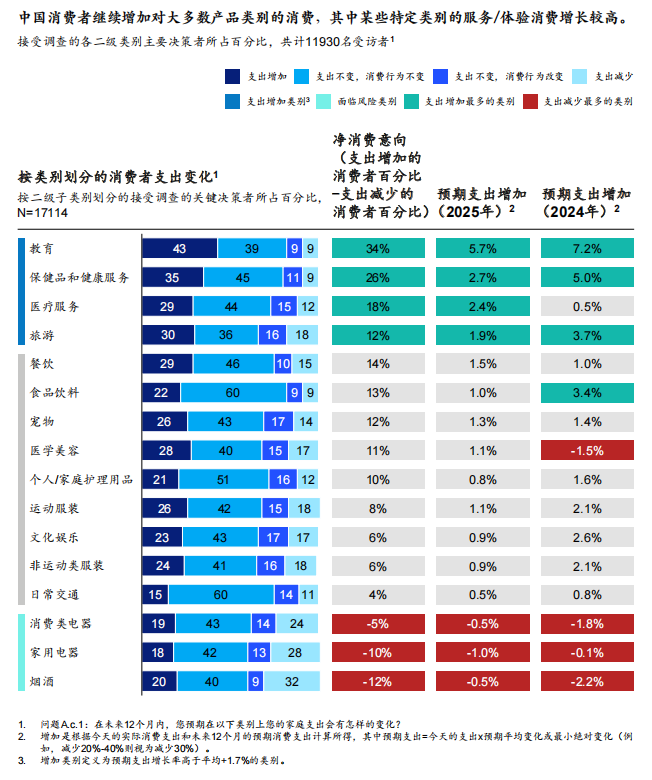 比如,他们表示,有意在2025年将日常支出增加2.6%。比如,许多人甚至愿意动用储蓄来维持生活水平。比如,他们倾向于把钱花在两类东西上。一类,是有形的“大件”。比如新房、房屋装修、汽车。另一类,是无形的“服务和体验”。比如旅游、教育、健康。目的,是获得快乐和个人成就感。