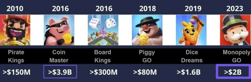 《金币大师》《Monopoly Go》正是其中最具代表性的案例。它们在表面上看似只是“点点点”的概率游戏,却在用户规模、付费深度和生命周期上,展现出远超传统休闲或棋牌游戏的韧性。