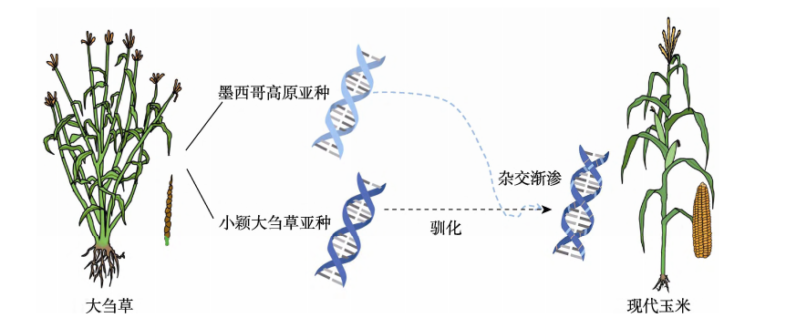 现代玉米起源过程示意图丨图源:引自文献[3]
