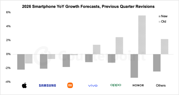 2026年智能手机出货年增率预测与修正图片转自Counterpoint咨询
