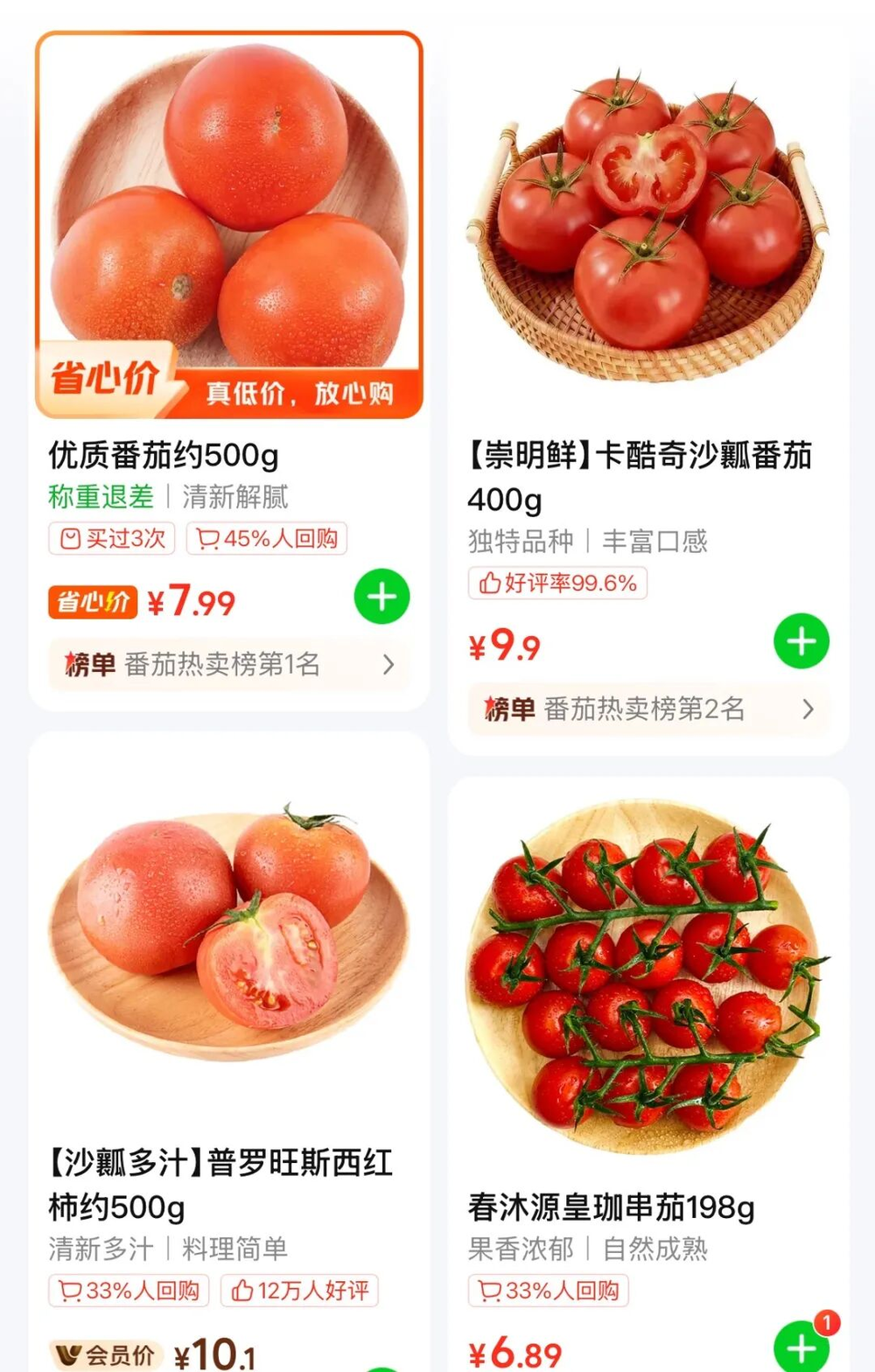 西红柿贵到只能当配菜。(图/生鲜电商平台)