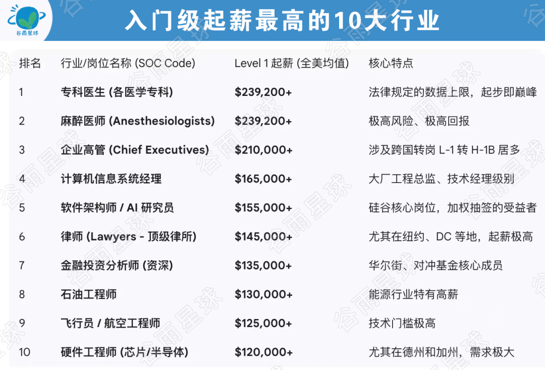 我们也找来了起薪Level1标准最高的10个行业,几乎都是竞争极其激烈的香饽饽,「越有钱就越有钱」。