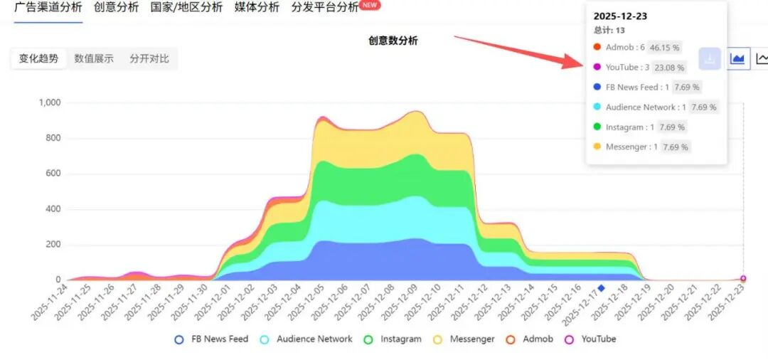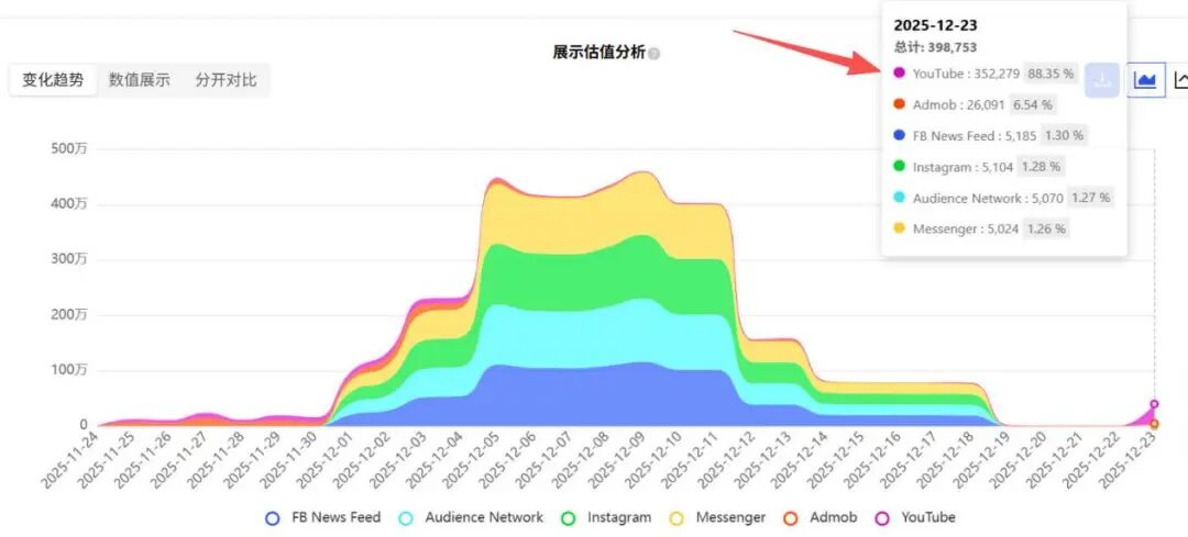 等到正式上线的12月23日,「我的休闲时光」只在YouTube等少数平台上投放素材,但值得注意的是游戏在这段时间里还通过YouTube投放了与Cozy Game头部KOL Snifferish(订阅者达到61.7万人)的合作广告。前面我们提到Cozy Game玩家分享新产品的一大平台就是YouTube,而Snifferish的宣传无疑带来相当好的推动效果。广告上线2天观看量就已经达到1.3万次,点赞数量也已经上千。广大大也显示目前展示量Top 7的素材全部来自YouTube。游戏上线前最后阶段对Cozy Game玩家的精准定位,成为了进一步推动游戏登顶的重要原因。
