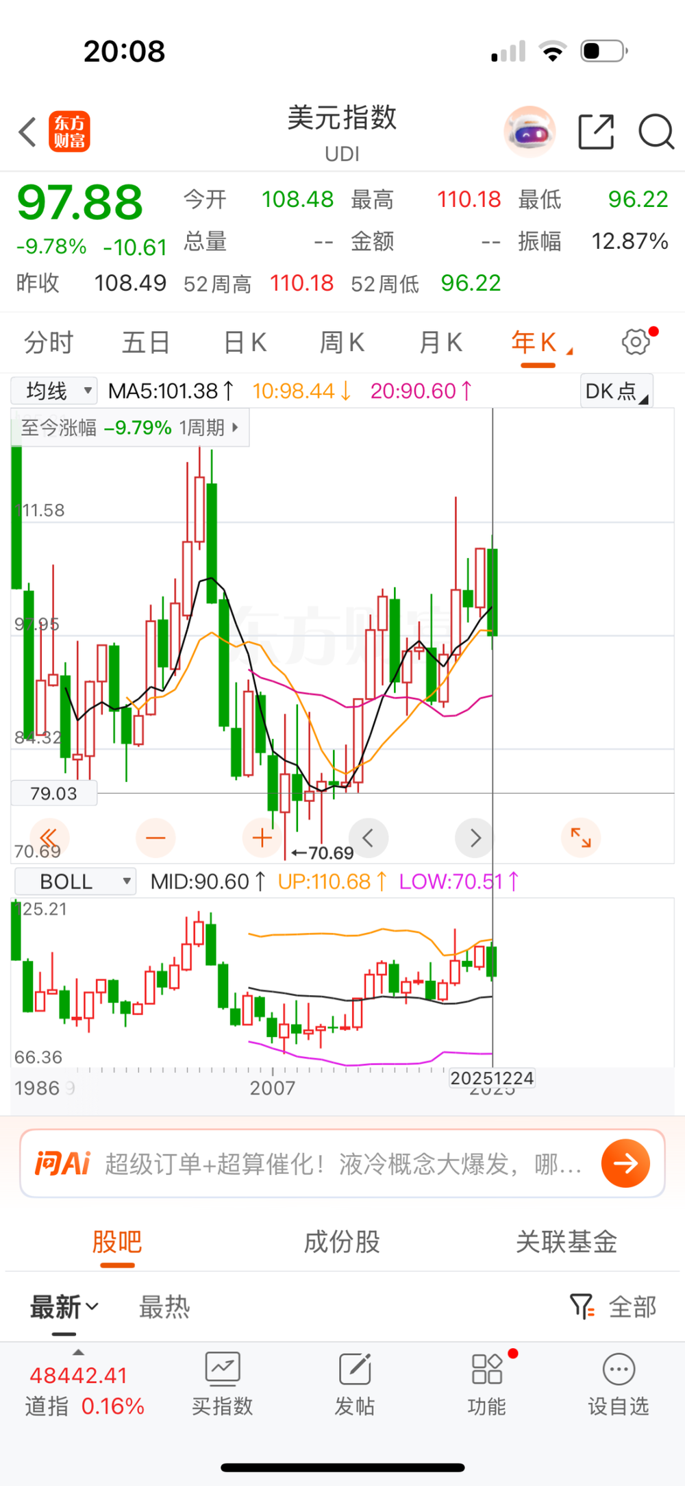 美元指数今年以来跌幅9.78%