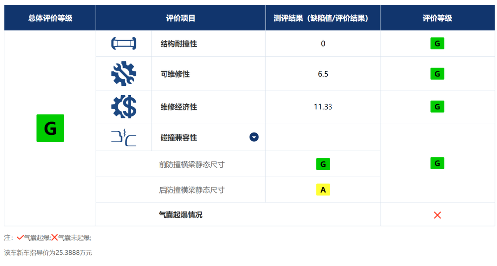 在中保研碰撞测试里,Model Y的“耐撞性与维修经济性”这一项是最低的P较差,其中的细分项“可维修性”与“维修经济性”均是P。
